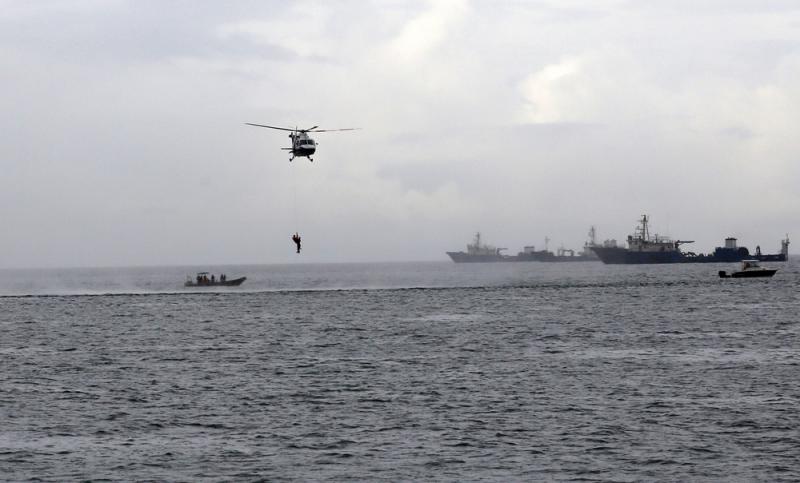 7月13日,「2017年三亞市海上事故及生產應急救援指揮實施演習」在海南三亞舉行。圖為參演直升機救援落水人員。