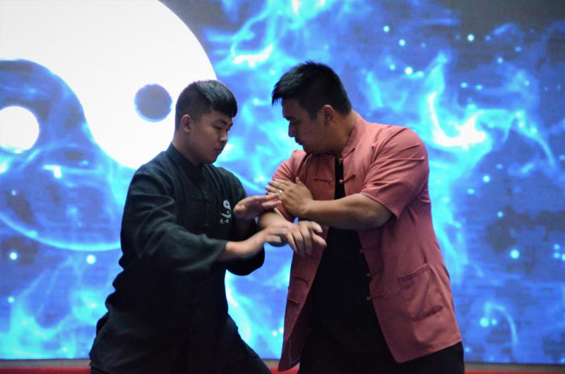 圖:太極習武者表演太極推手 實習記者郭芷萱攝