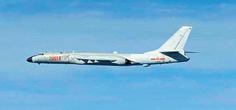 圖:日本防衛省發放中國空軍6架轟炸機13日飛越宮古海峽的照片/網絡圖片