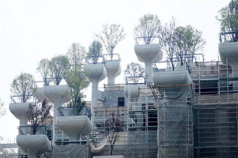 圖:「空中花園」頂部高度不一的承台上種滿各種綠色植物/網絡圖片