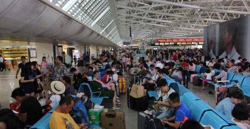 圖:7月16日,大批乘客滯留在三亞鳳凰國際機場/網絡圖片