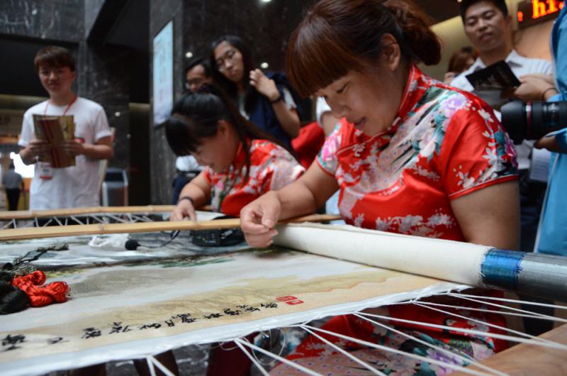 圖:河南安繡文化產業有限公司繡工展示繡技/實習記者郭芷萱攝