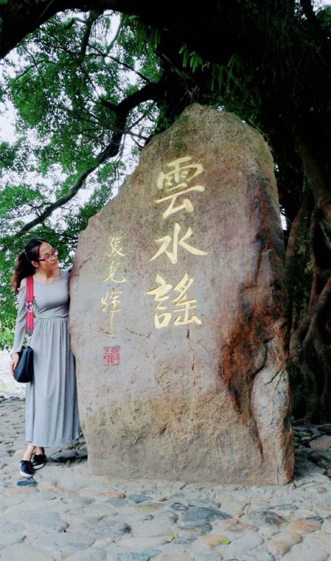 圖:張克輝題寫的《雲水謠》片名豎立在福建漳州長教古鎮/何德花攝