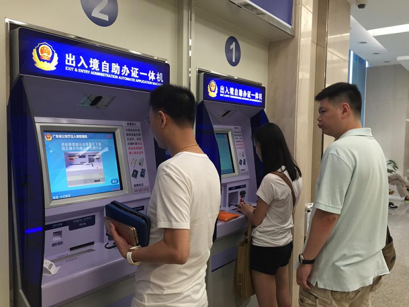 圖:圖為全面推廣的「出入境自助辦證一體機」大公報記者方俊明攝