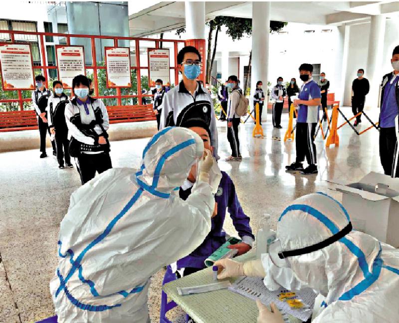 圖:深圳福田外國語學校學生返校前進行核酸檢測 受訪者供圖