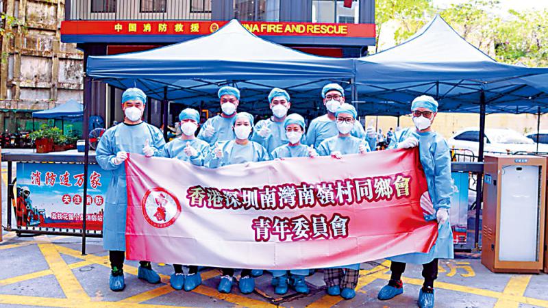 圖:在深圳疫情期間,香港深圳南灣南嶺村同鄉會義工支援核酸檢測點。\受訪者供圖