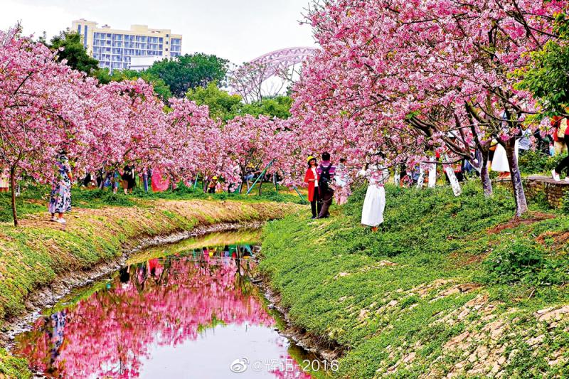 圖:海珠濕地的櫻花林是廣州人春遊「打卡」熱點。 網絡圖片