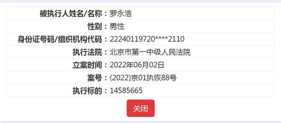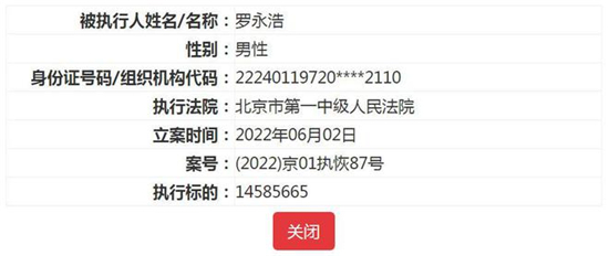 查詢中國執行信息公開網,上述兩條恢復執行信息立案時間均為6月2日,案號分別為(2022)京01執恢88號、(2022)京01執恢87號,執行標的均為1458.57萬元,執行法院均為北京市第一中級人民法院。