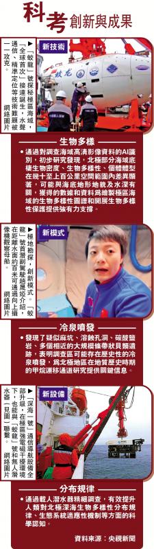 •通過載人潛水器精細調查,有效提升人類對北極深海生物多樣性分布規律、生態系統適應性機制等方面的科學認知。