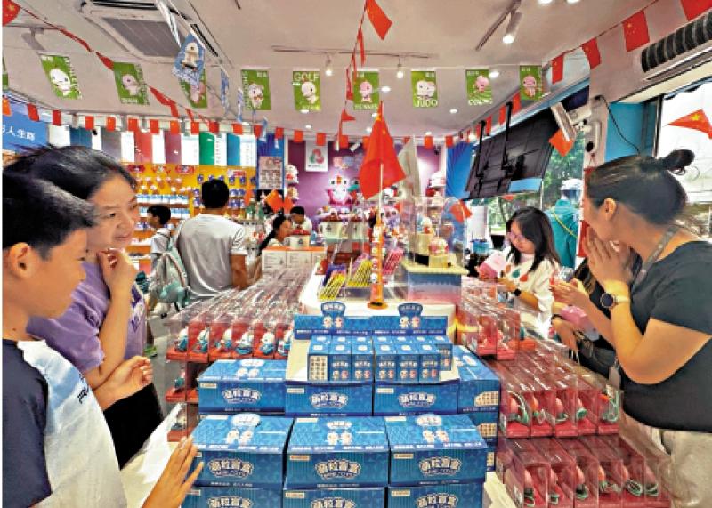 圖:國慶長假期間,廣州多個商圈客流量爆棚,文創產品銷售火熱。/大公報記者盧靜怡攝