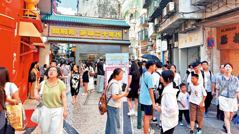 「此次一家大小赴澳過節,令人驚喜的是,澳門在黃金周設置了臨時行人專用區,而且社區特色鮮明,呈現出不一樣的節日韻味。」廣東居民王小姐說。澳門在推動以超人氣IP角色裝置吸引旅客的「IP經濟」同時,結合茶餐廳等美食元素,讓遊客可以沉浸式感受本地的生活。
