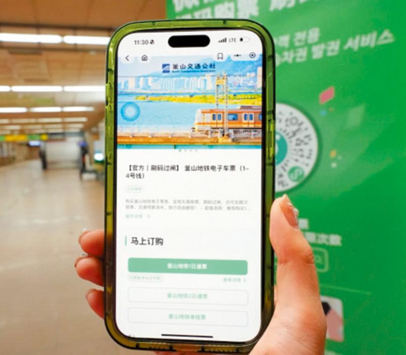 圖:韓國釜山地鐵支持微信小程序刷碼進站。\受訪者供圖