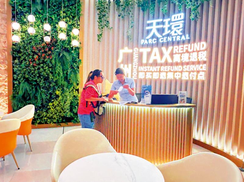 圖:東南亞旅客在廣州天環廣場辦理「即買即退」退稅業務。\大公報記者敖敏輝攝