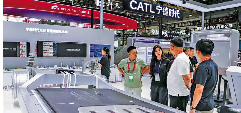 圖:在2025第三屆中國國際供應鏈促進博覽會,參會者在智能汽車鏈展區了解寧德時代神行PLUS電池。\新華社