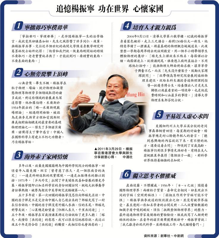 圖:2011年3月29日,楊振寧在香港浸會大學與師生分享創意心得。\中通社