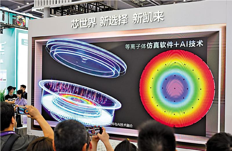 圖:《建議》提出,加強原始創新和關鍵核心技術攻關。圖為在深圳舉辦的2025灣區半導體產業生態博覽會(簡稱「灣芯展」)上引人矚目的半導體設備企業新凱來的展位。\中通社