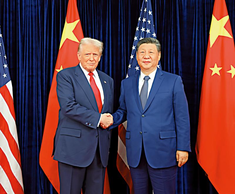 圖:當地時間10月30日,國家主席習近平在釜山同美國總統特朗普舉行會晤。\新華社