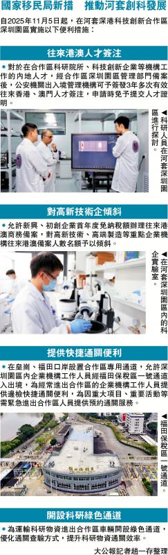 自2025年11月5日起,在河套深港科技創新合作區深圳園區實施以下便利措施: