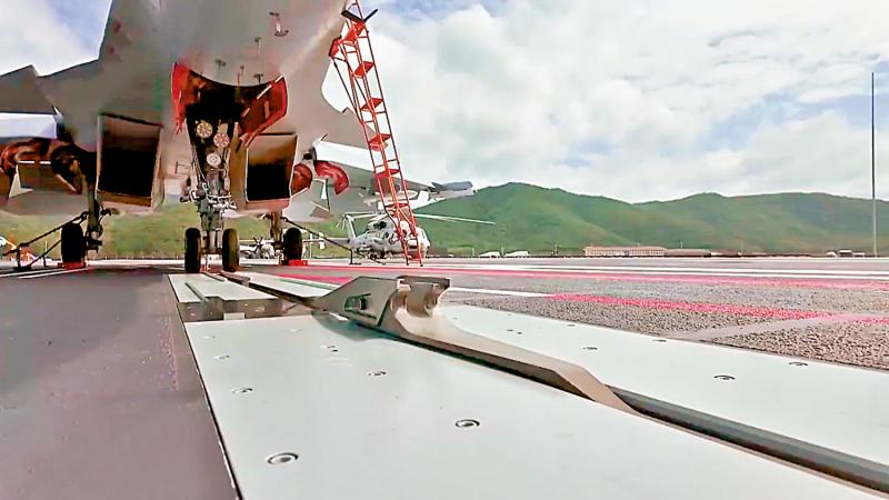 圖:福建艦電磁彈射器用於牽引艦載機的裝置。