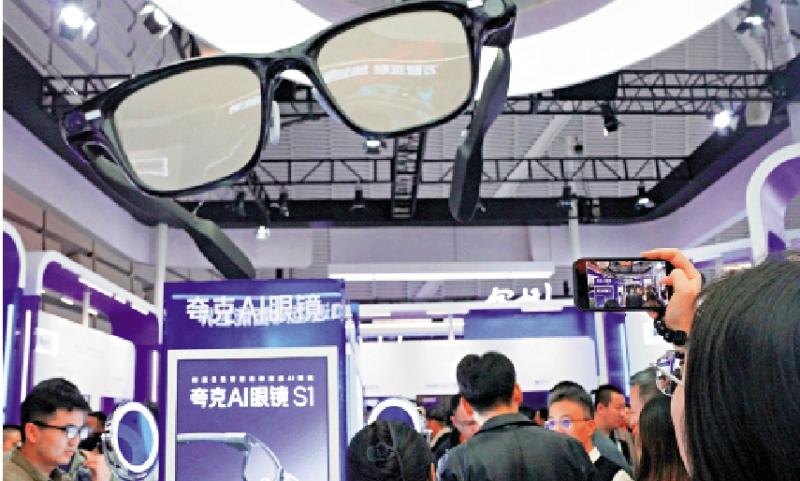 圖:觀眾在2025年世界互聯網大會「互聯網之光」博覽會現場的AI眼鏡展台參觀拍照。\新華社