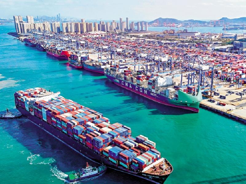 圖:中美相互停收船舶特別港務費,航運界認為可為貿易減負。圖為一艘貨輪5日駛出青島港。\新華社
