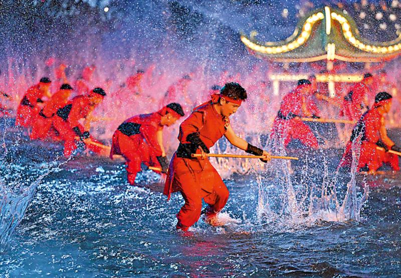 圖:通過穿戴防滑裝備,演員在水舞台上表演更加安全。\新華社