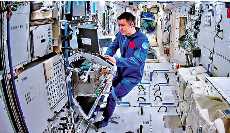 圖:神舟二十號乘組刷新了中國航天員單次飛行在軌時間最長紀錄。圖為陳冬在空間站組合體艙內工作。\新華社