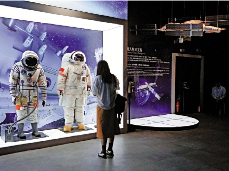 圖:香港觀眾觀看「無盡探索:中國的航天、航空及航海」展覽。\新華社