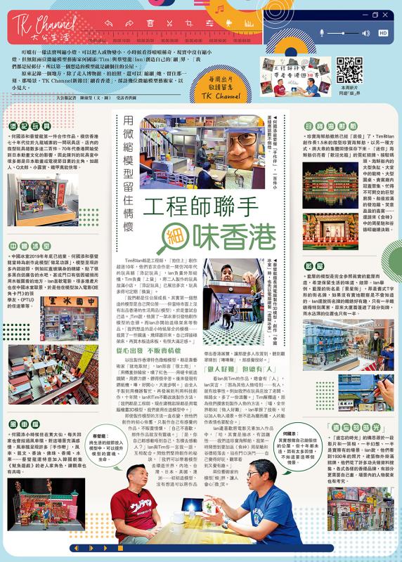 原來記錄一個地方,除了走入博物館、拍拍照,還可以「縮細」她,留住那一刻、那場景。TK Channel新節目「細看香港」,採訪幾位微縮模型藝術家,以小見大。\大公報記者 陳淑瑩(文、圖) 受訪者供圖