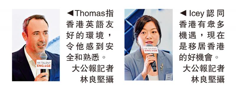 左圖:Thomas指香港英語友好的環境,令他感到安全和熟悉。右圖:Icey認同香港有眾多機遇,現在是移居香港的好機會。\大公報記者林良堅攝