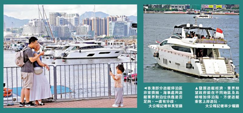 左圖:香港部分遊艇停泊區非常擠擁,海事處與遊艇業界對泊位供應是否足夠,一直有分歧。\大公報記者林良堅攝;右圖:發展遊艇經濟,業界期望政府能在不同地區及島嶼增加停泊點,方便遊艇乘客上岸遊玩。\大公報記者林少權攝