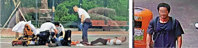 圖:海心公園兩名男子中刀重傷,右圖為疑兇。