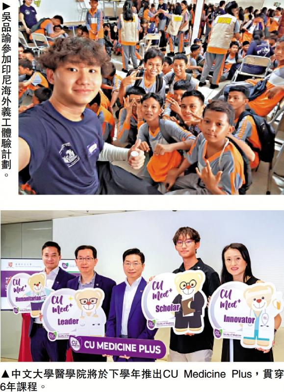 上圖:吳品諭參加印尼海外義工體驗計劃。下圖:中文大學醫學院將於下學年推出CU Medicine Plus,貫穿6年課程。