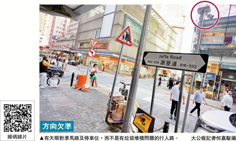 圖:有天眼對準馬路及停車位,而不是有垃圾堆積問題的行人路。/大公報記者何嘉駿攝