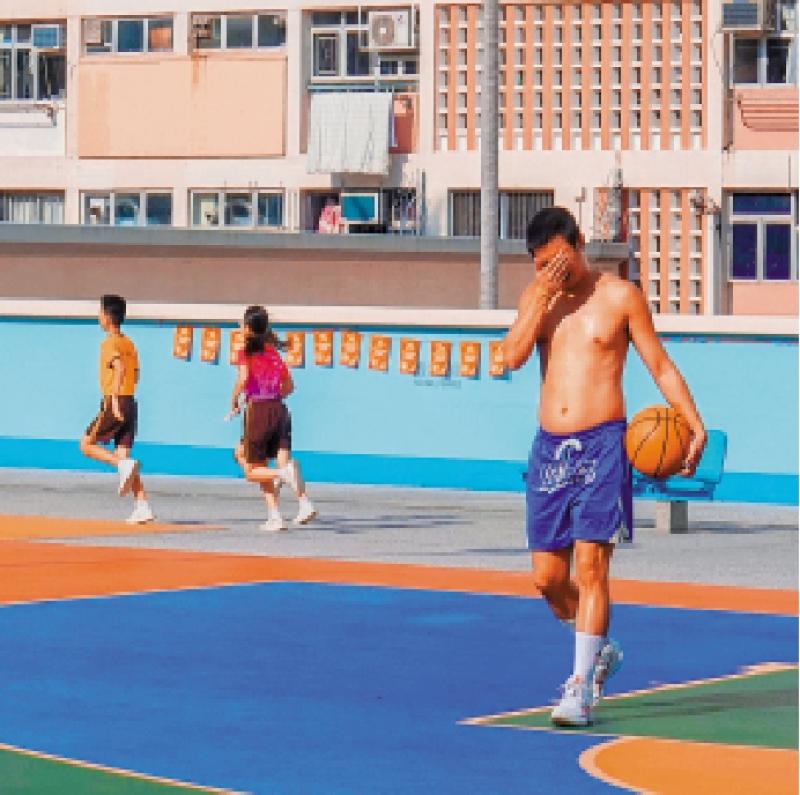 圖:昨日天氣酷熱,彩虹邨籃球場上的波友也難耐高溫。\大公報記者蔡文豪攝