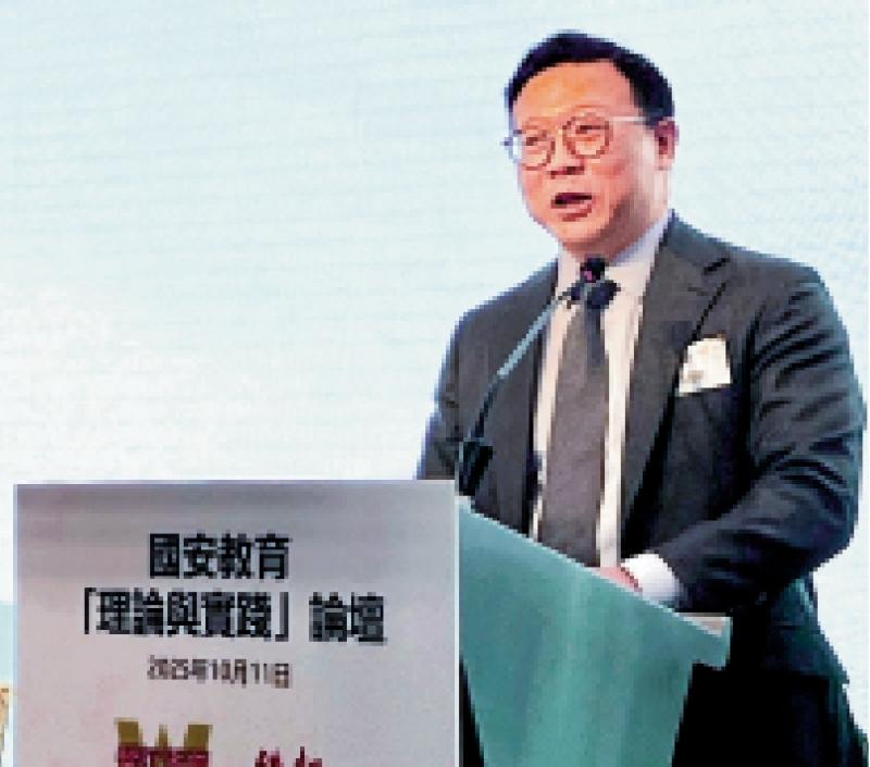 圖:張國鈞昨日在「國安教育理論與實踐」論壇上致辭。