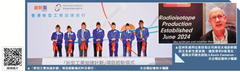 創新科技署去年9月推出100億元「新型工業加速計劃」。香港科技園公司(科技園公司)與亞洲先進同位素技術有限公司(同位素公司),昨日在大埔創新園舉行「新型工業加速計劃」項目起動儀式。同位素公司引入的超導迴旋加速器,將用於製備癌症診療相關的放射性同位素,有望為醫療領域帶來突破性進展。