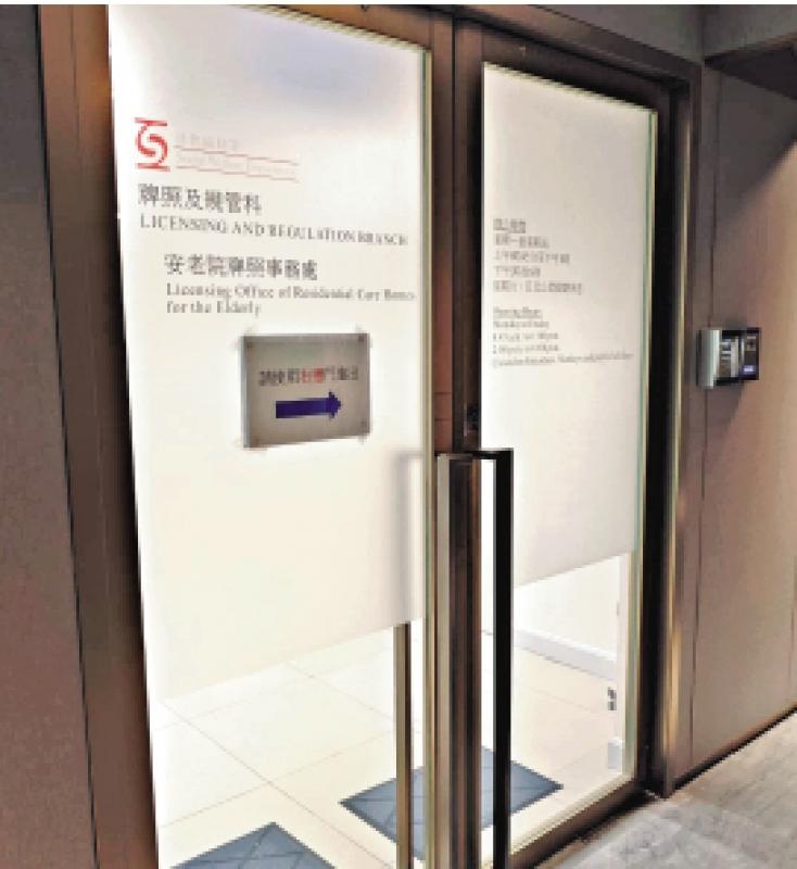 圖:社會福利署表示,已加強監管及巡查,並向所有安老院舍發出管理指引,敦促院舍嚴正遵從收費及報銷規定。圖為安老院牌照事務處。
