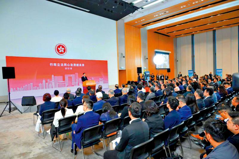 圖:特區政府日前舉行「行政立法同心治港創未來」研討會,行政長官李家超致辭。