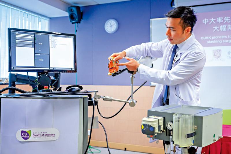 圖:余知行醫生示範,將超聲波能量傳送至前列腺指定位置,產生熱力以消滅癌細胞。