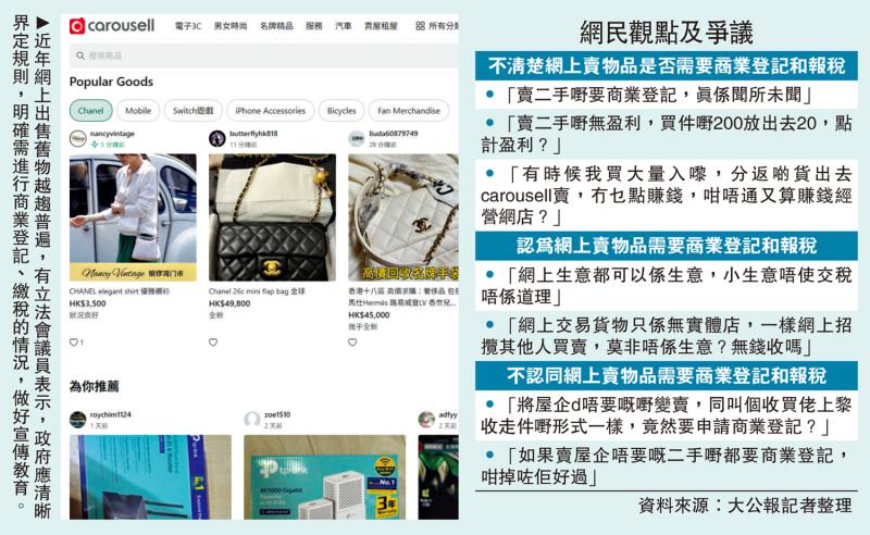 圖:近年網上出售舊物越趨普遍,有立法會議員表示,政府應清晰界定規則,明確需進行商業登記、繳稅的情況,做好宣傳教育。