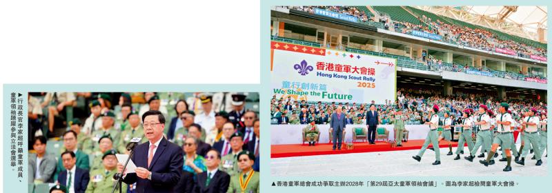 李家超同時祝賀香港童軍總會成功爭取主辦2028年「第29屆亞太童軍領袖會議」。他表示,這是繼1978年及1998年後,時隔30年,這項盛事再度落戶香港,為本地青年提供參與國際交流活動的寶貴機會。李家超指出,「青年興,則香港興」,青年是香港的未來,政府重視青年發展,希望培育香港青年成為愛國愛港、具世界視野,具正向思維,有技能、有抱負的新一代。自2022年公布《青年發展藍圖》以來,政府已落實超過160項具體措施。其後,各政策局再推出約90項新措施,確保《藍圖》與時俱進。上月發表的新一份施政報告還進一步提出多項青年發展措施,包括推出「青年人才培養計劃」,提供參與國際組織實習、國際會議,以及到內地大型傳媒機構實習的機會;同時深化「青年理財教育計劃」,並推出調解工作坊,全方位裝備香港青年,迎接未來挑戰。