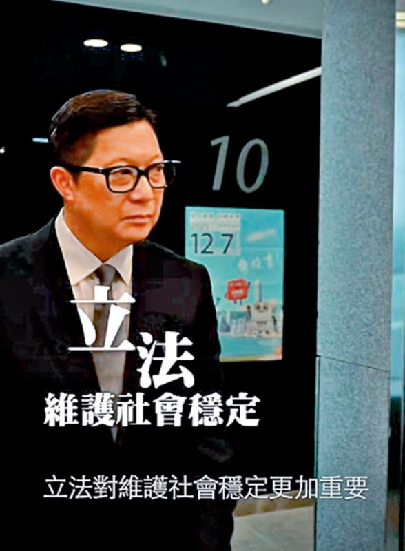 圖:鄧炳強以「擸髮」短片表達「立法」對維護社會穩定的重要性。