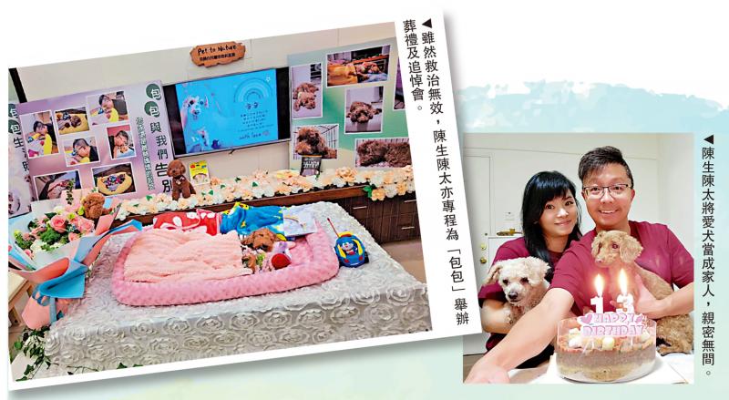 左圖:雖然救治無效,陳生陳太亦專程為「包包」舉辦葬禮及追悼會。右圖:陳生陳太將愛犬當成家人,親密無間。