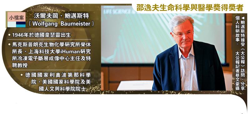 沃爾夫岡.鮑邁斯特日前接受《大公報》訪問時,分享了自己的科研故事。1980年代,科研界普遍的標準是研究「孤立狀態」下的分子,如將蛋白質或多蛋白質複合物純化,使其與其他細胞成分完全分離。