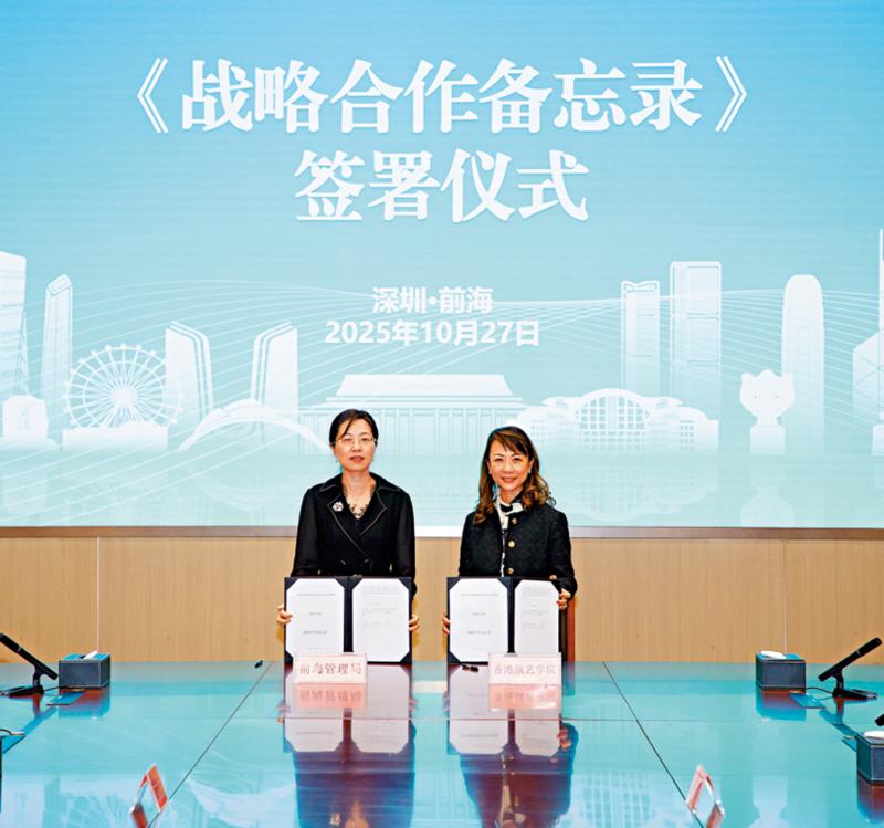 圖:演藝學院與深圳市前海管理局日前簽署《戰略合作備忘錄》。