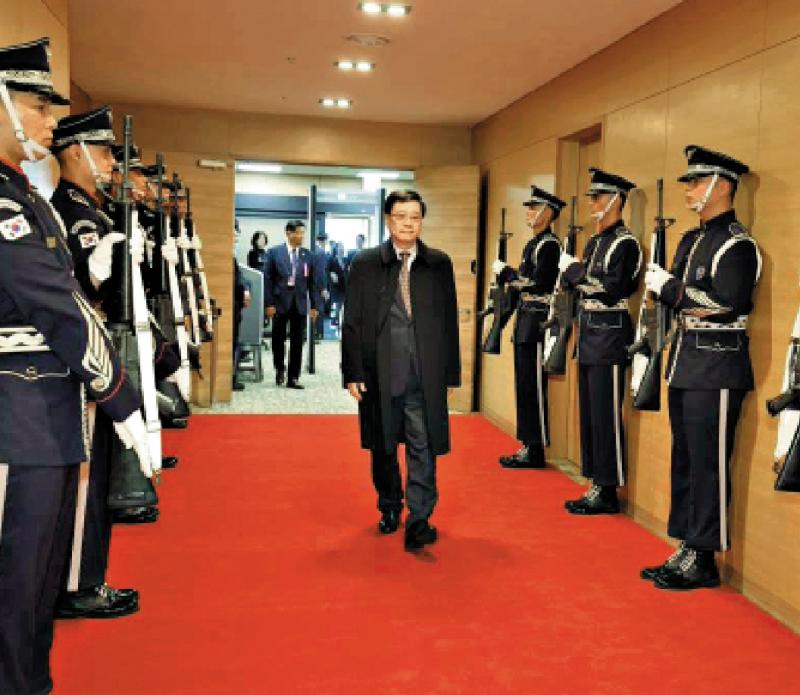圖:特首李家超和團隊昨日抵達韓國,今將出席第32屆亞太經合組織領導人非正式會議。