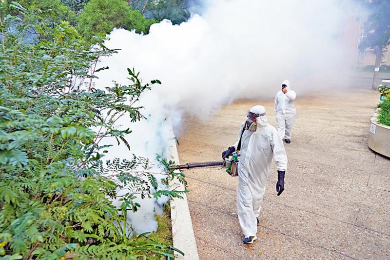 圖:鳳德邨早前出現基孔肯雅熱個案後,當局已派員到邨內及龍蟠苑一帶噴滅蚊煙霧。\大公報記者林良堅攝