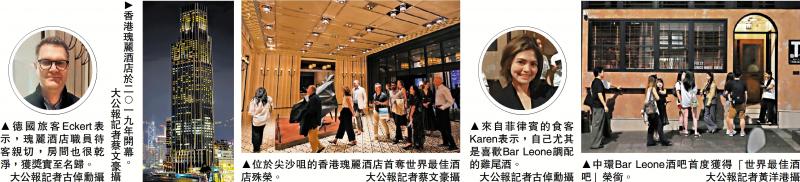 【大公報訊】記者古倬勳、戴靜文報道:「世一酒店」、「世一酒吧」盡在香港!本港繼位於中環的Bar Leone早前在「世界50最佳酒吧」獲頒全球第一後,位於尖沙咀的香港瑰麗酒店於最新公布的「世界50最佳酒店」,登上全球第一位。大公報記者昨日到香港瑰麗酒店、Bar Leone現場直擊,適逢萬聖節,不少顧客「扮鬼扮馬」,有旅客表示在香港旅遊有愉快體驗。