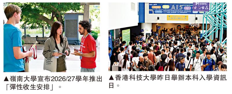 左圖:嶺南大學宣布2026/27學年推出「彈性收生安排」。右圖:香港科技大學昨日舉辦本科入學資訊日。